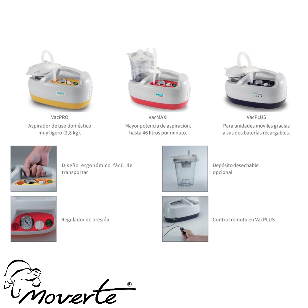 Con la aspiración de secreciones se obtiene una mejor calidad de vida de las personas que no pueden expectorar por sí mismas. Suponen una gran ayuda en la eliminación de moco y flemas por aspiración nasal, oral y traqueal, tanto en adulto como en niño. Con ello prevenimos complicaciones en la vía aérea.