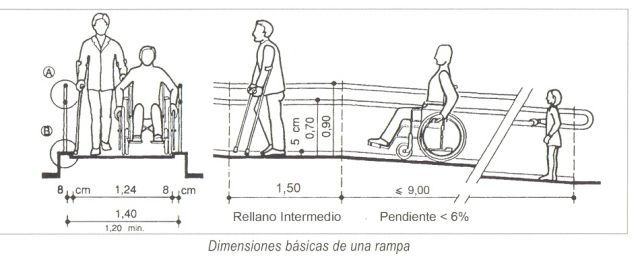Las administraciones, pueden exigir pendientes entre el 8% y eel 10%. Lo que ocurre es que en muchas ocasiones, no se pueden colocar rampas largas porque no hay espacio suficiente.