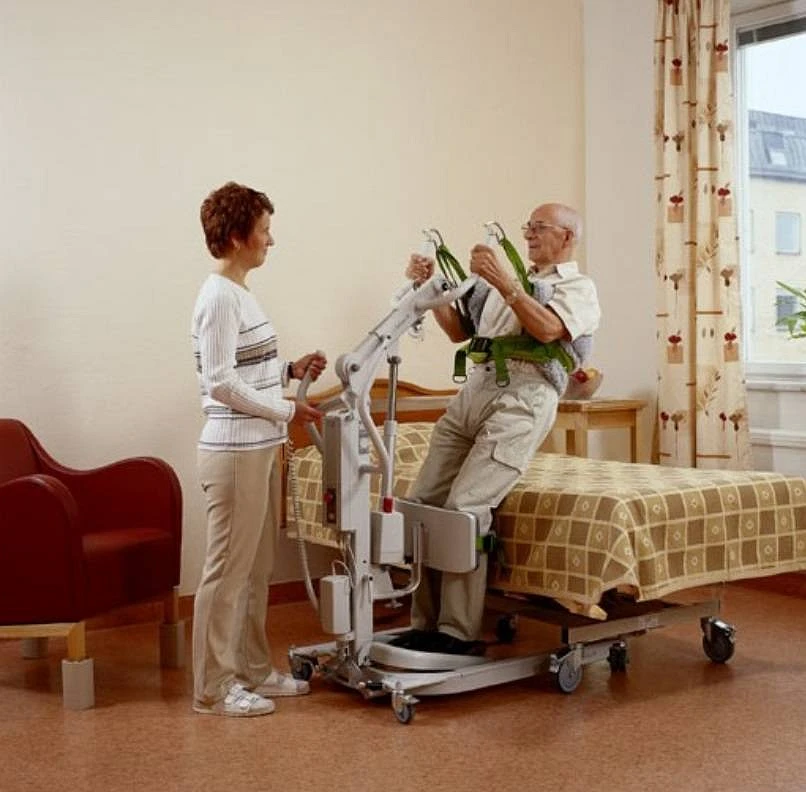 - Como alternativa al chaleco de apoyo, se recomienda el chaleco Seguridad o el chaleco Confort. En el caso del chaleco de apoyo, se utiliza la grúa Sabina con la percha Confort (ancha) y los brazos del paciente se colocan por dentro del chaleco.