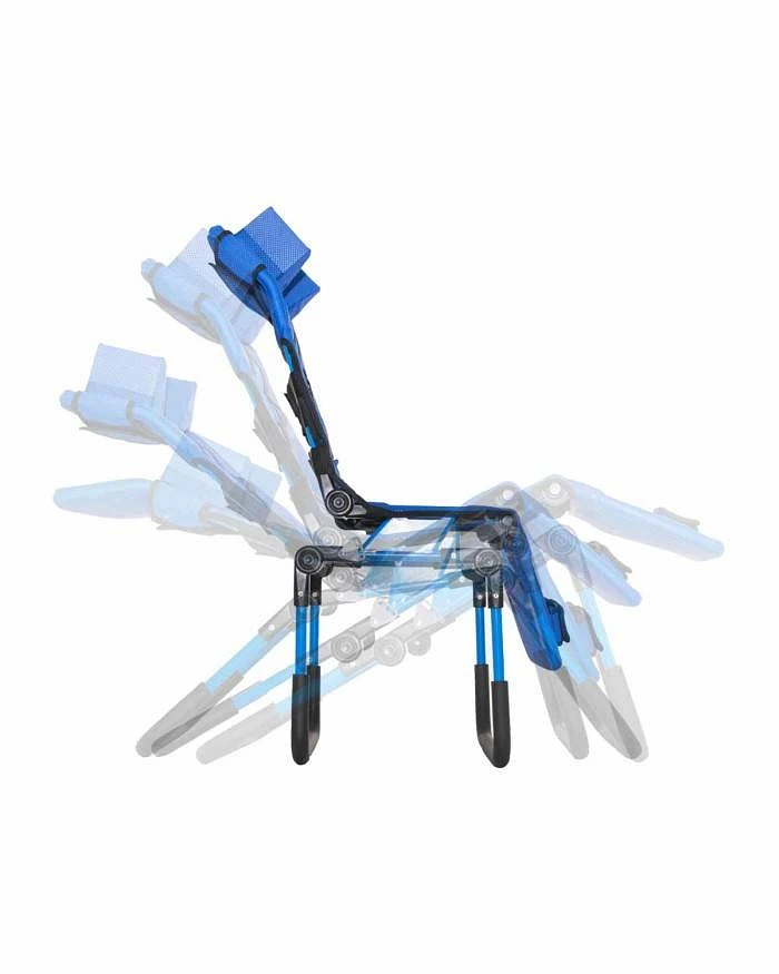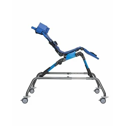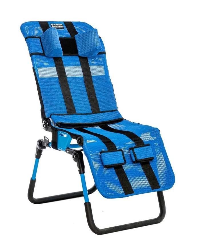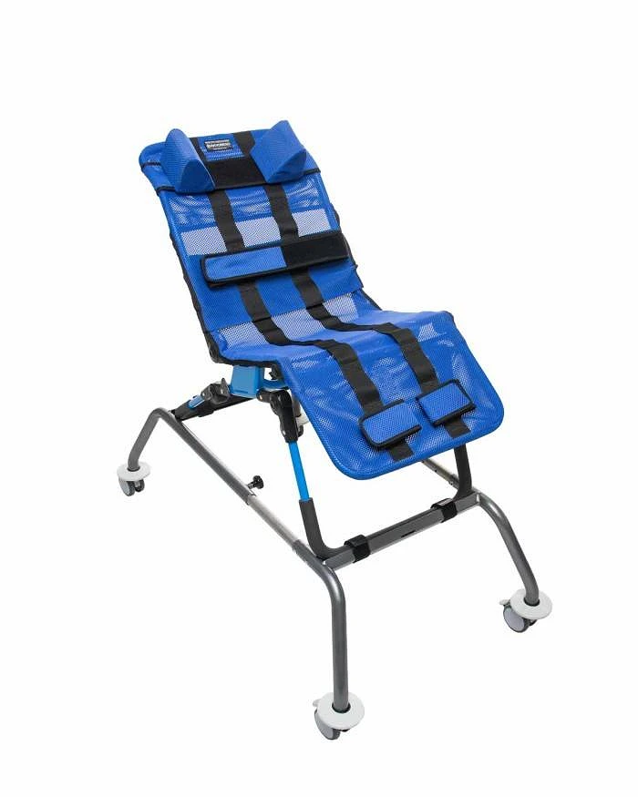 Además, dispone de sujeciones para la cabeza, el tronco, pelvis y piernas para asegurar la postura adecuada de cada usuario.