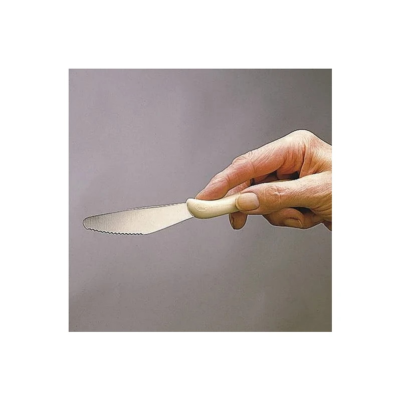 Esdte cuchillo con mango especial, fabricado por la prestigiosa marca Caring, ha sido diseñado a partir de estudios con personas con poca fuerza en los dedos o muñecas y movilidad limitada.
