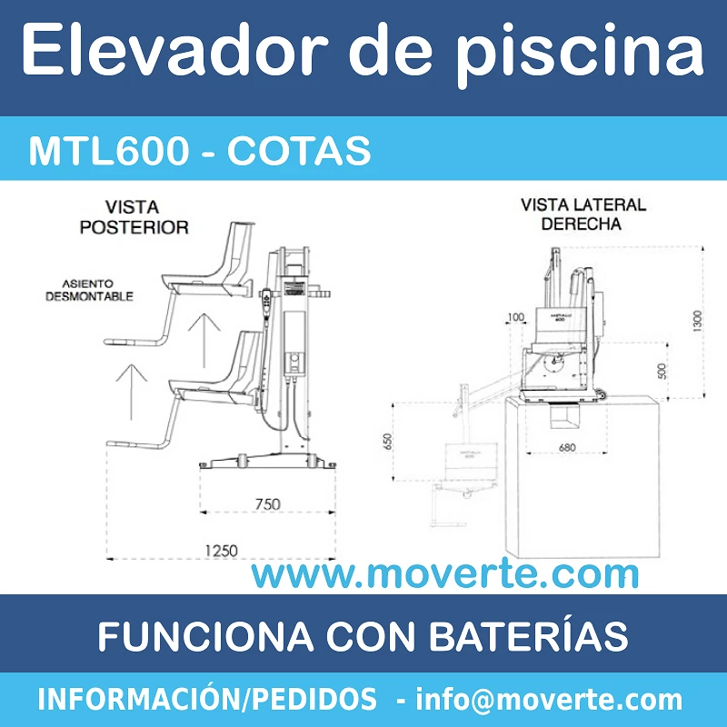 ELEVADOR PISCINA CON BATERÍAS MTL600