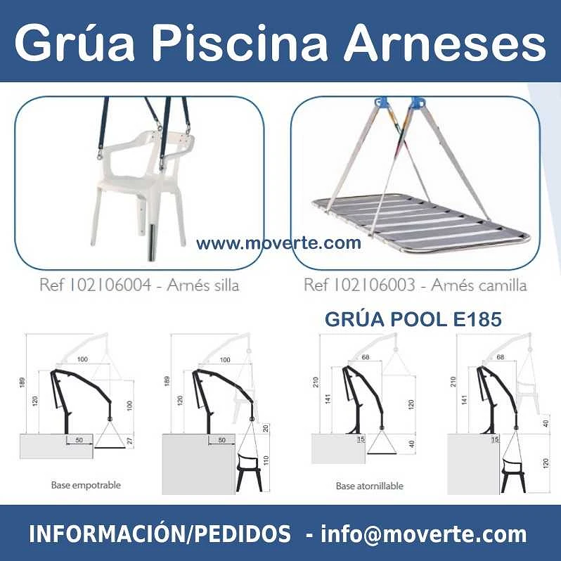 Puedes comprar la grúa para piscina junto con el arnés y así poder entrar en el agua haciendo una transferencia desde la silla de ruedas a la silla arnés de plástico.
