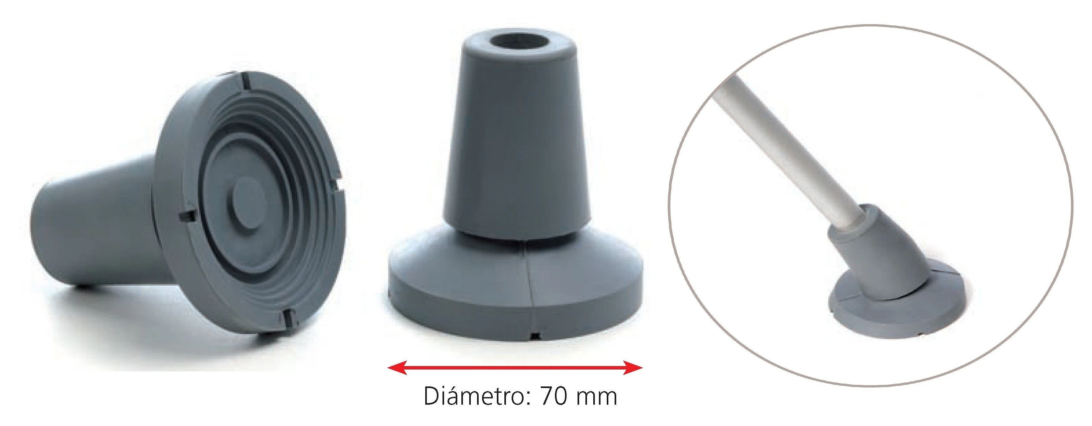 Para proporcionar la máxima seguridad y adherencia. La gran base de 70 mm da una sensación de mayor seguridad y confianza durante la deambulación y además no se hunde en los terrenos blandos.