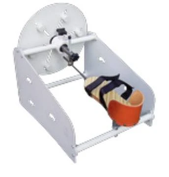 - Diseñado para la ejercitación del tobillo y fabricado en chapa de acero con recubrimiento en epoxy, zapatilla de madera y cuero con sujeciones de velcro.