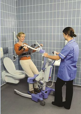 La forma de la base permite al cuidador acercarse al máximo a la grúa para trabajar más estrechamente con el paciente