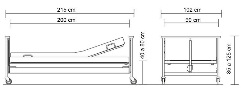 La cama articulada eléctrica Antares 2 de altura regulable (90 × 200 cm) con carro elevador.