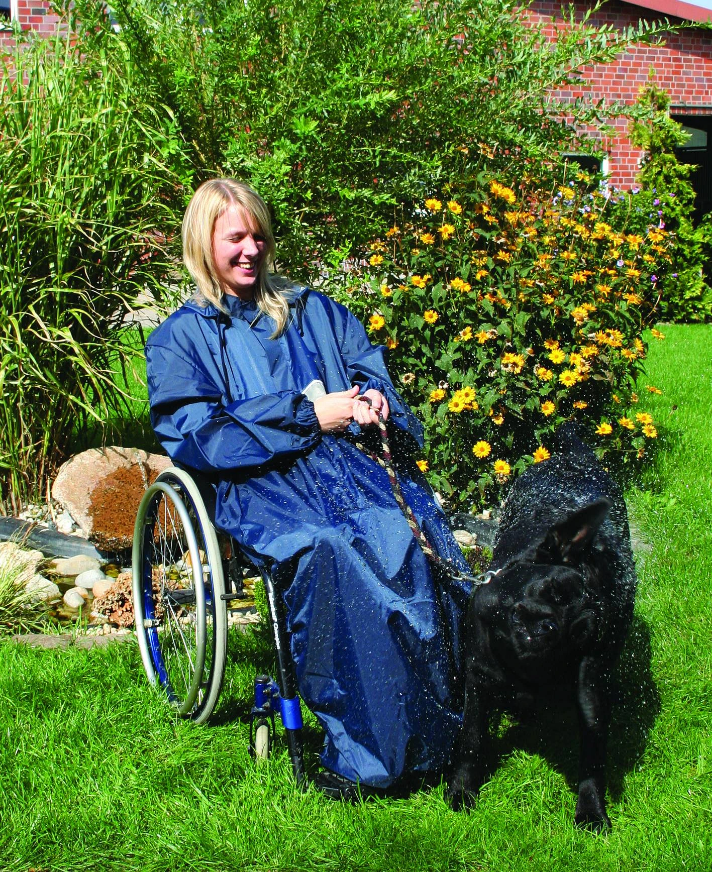 - Esta capa con capucha y mangas es muy práctica como ropa de abrigo en silla de ruedas.