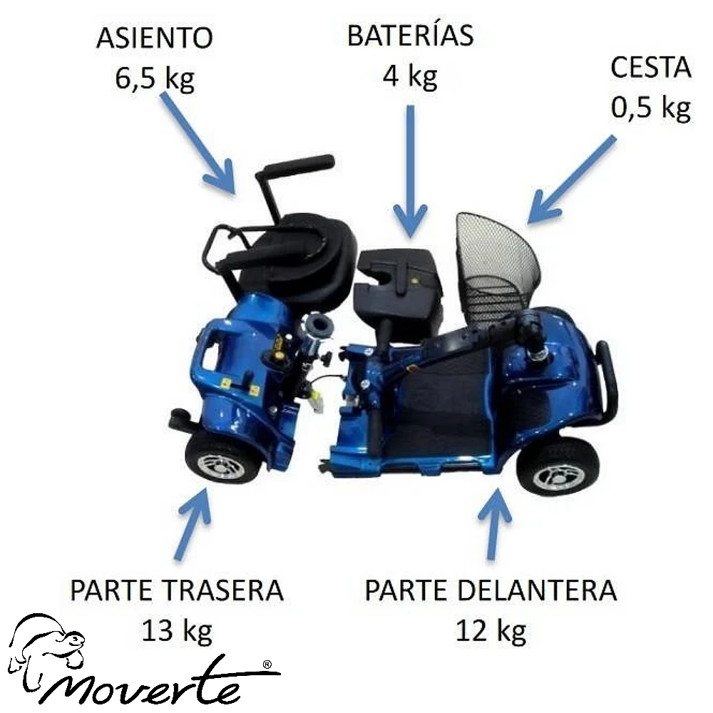 Este pequeño scooter eléctrico para discapacitados, con baterías de Litio de 20 Ah. proporciona una autonomía de hasta 25 Km. Un scooter que podemos acortar hasta 88 cm para que quepa en el ascensor.