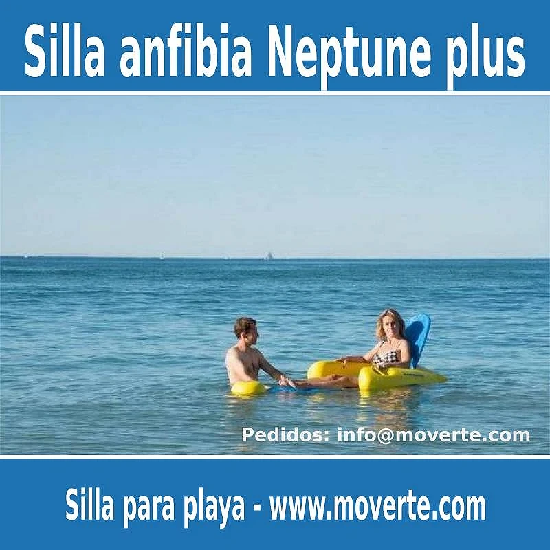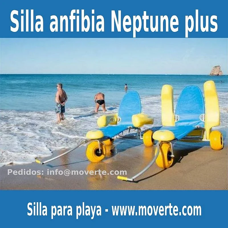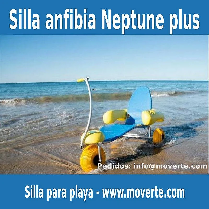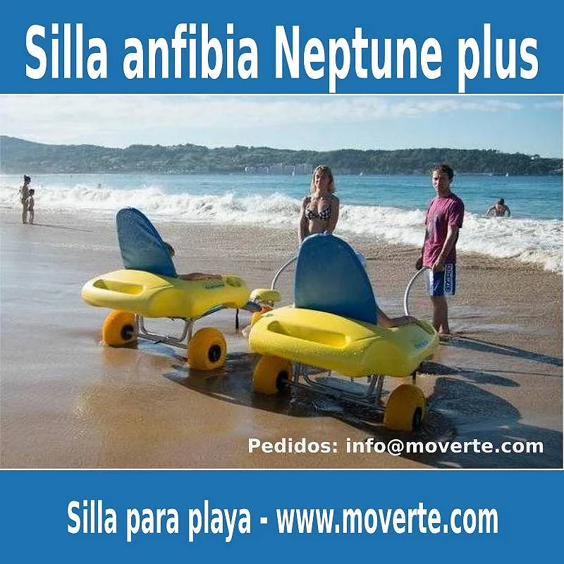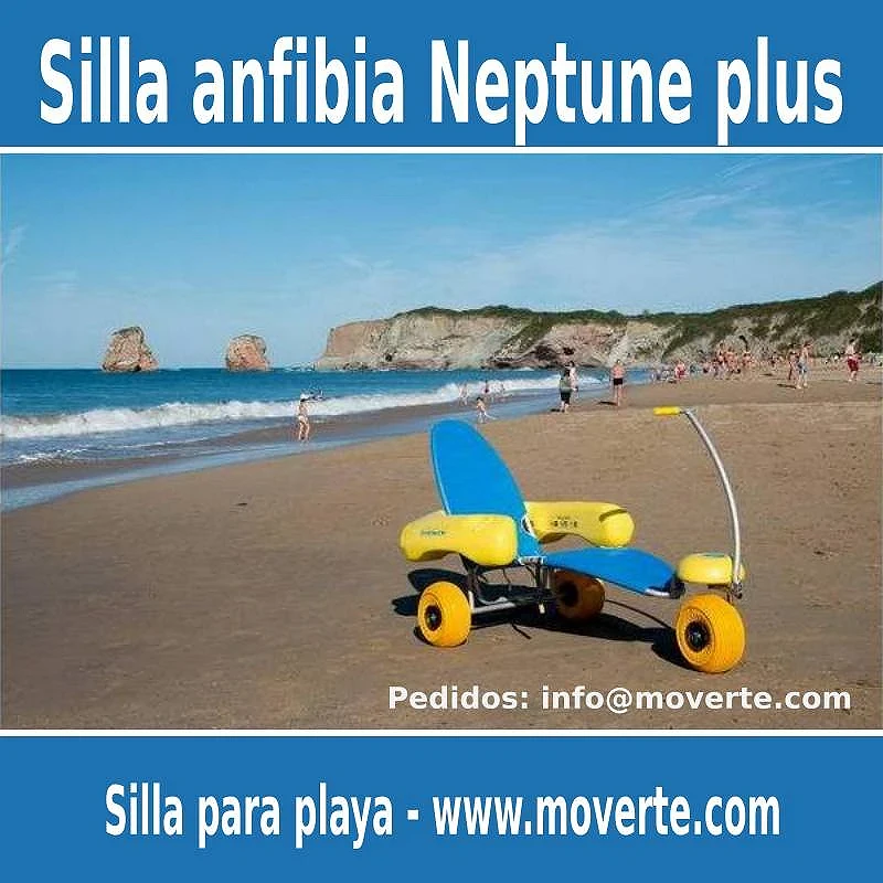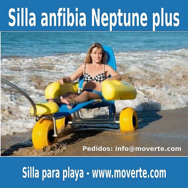 Es una silla anfibia de playa confortable para que las persona con discapacida puedan bañarse en el mar y el asiento de la silla está fabricado en tejido hipoalergénico que se adapta al cuerpo del usuario y favorece el flujo y salida del agua y la arena.