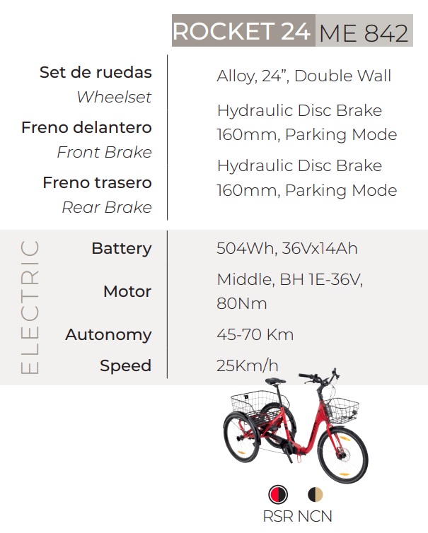 Más información sobre Triciclo Eléctrico ROCKET 24